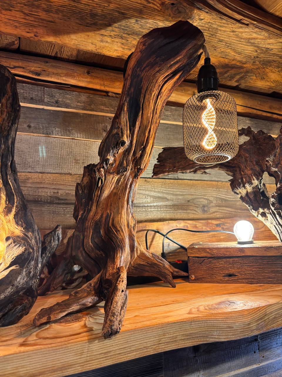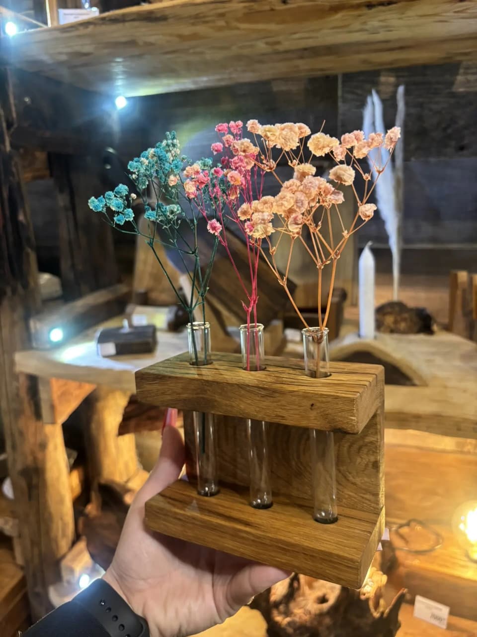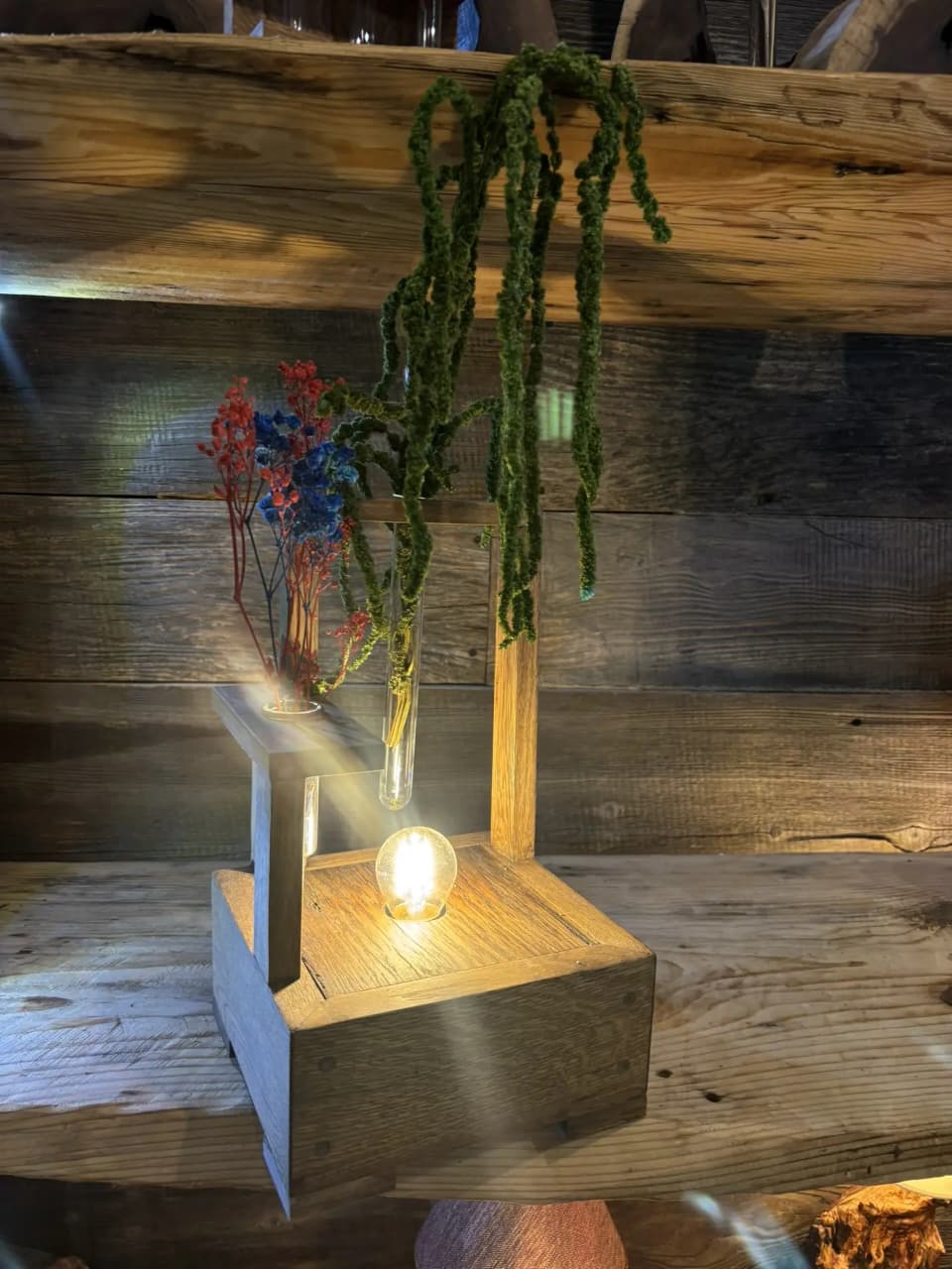 Лампа/ночник с подставкой для сухоцветов из дуба